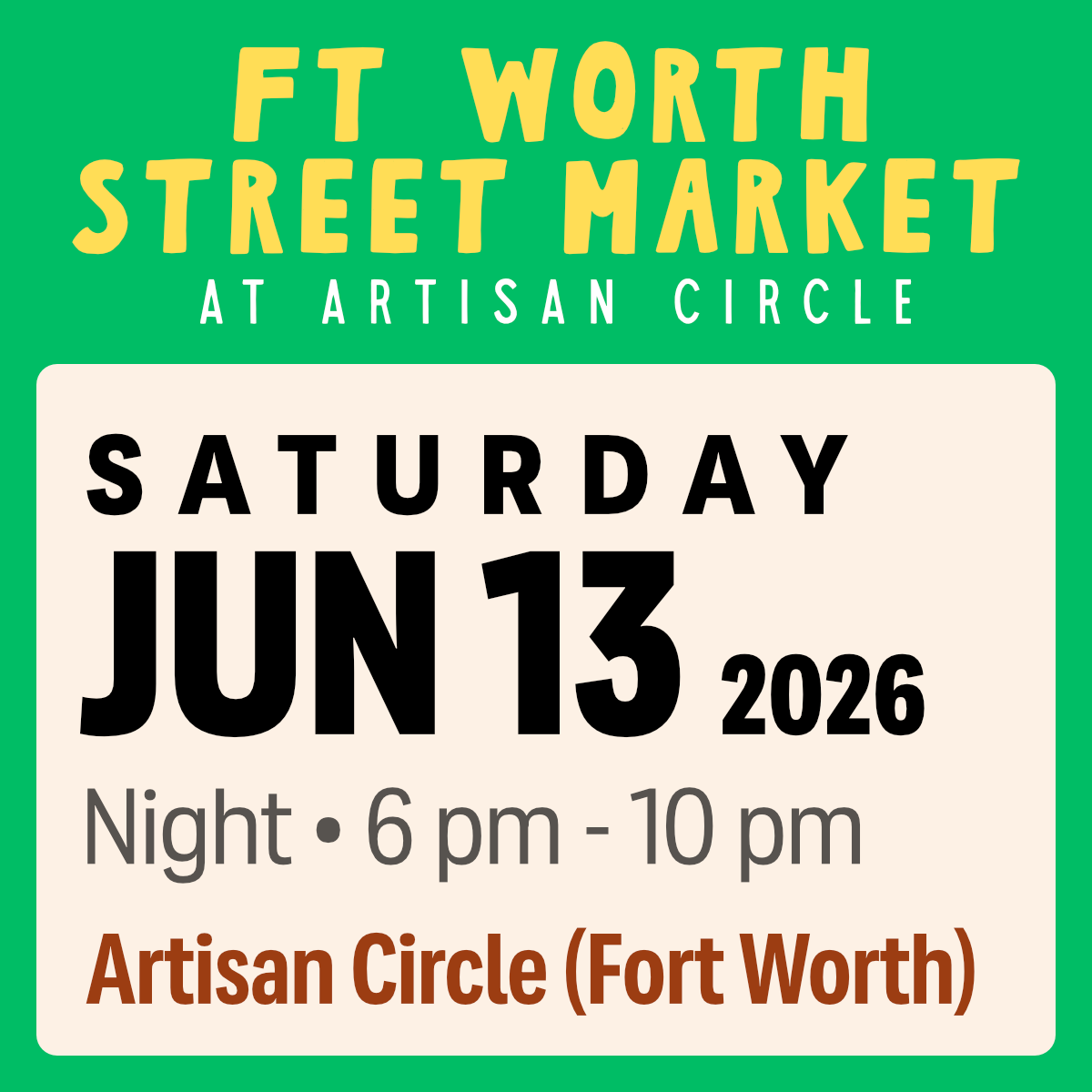 Ft Worth Street Market at Artisan Circle - June 13, 2026 (Night Market)