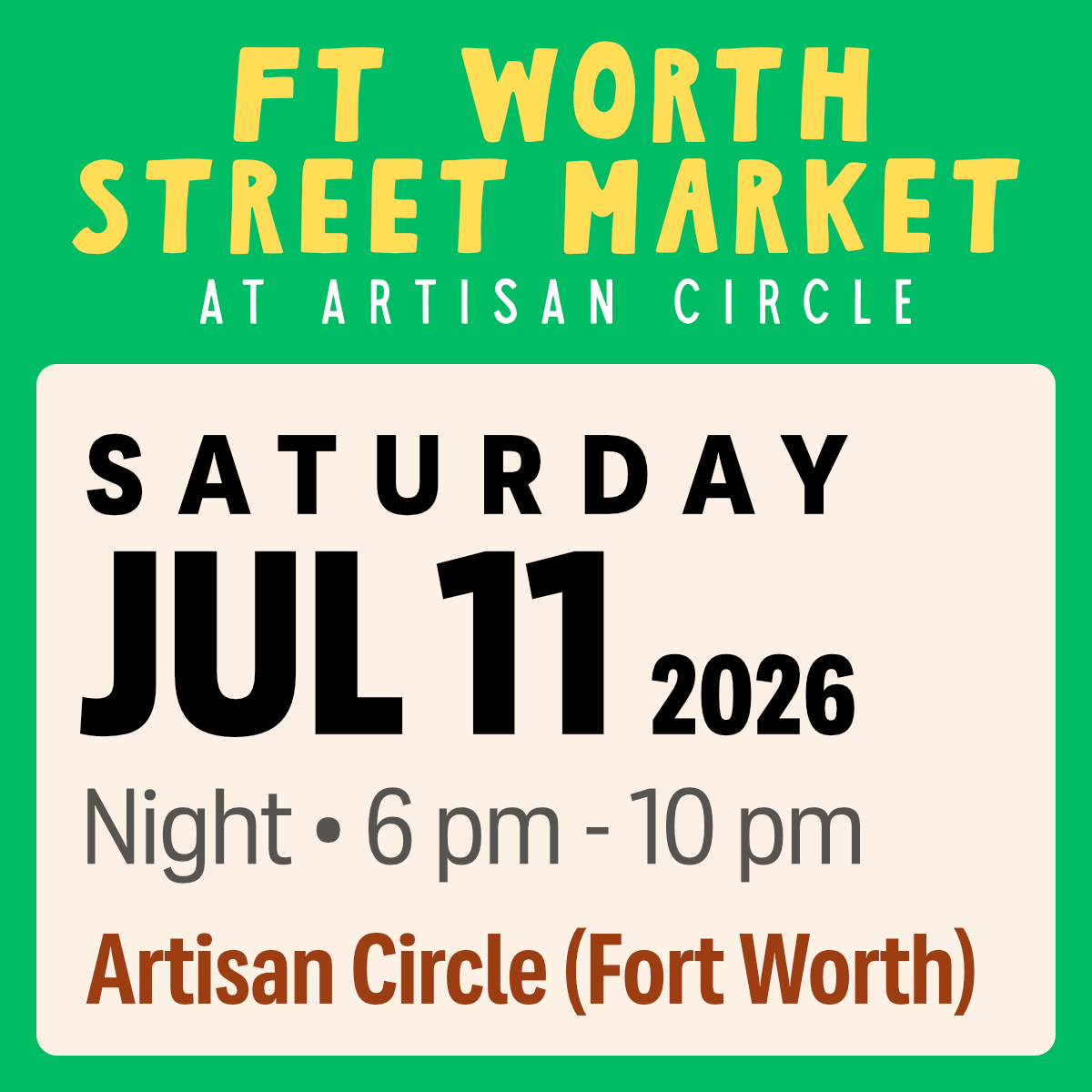 Ft Worth Street Market at Artisan Circle - July 11, 2026 (Night Market)