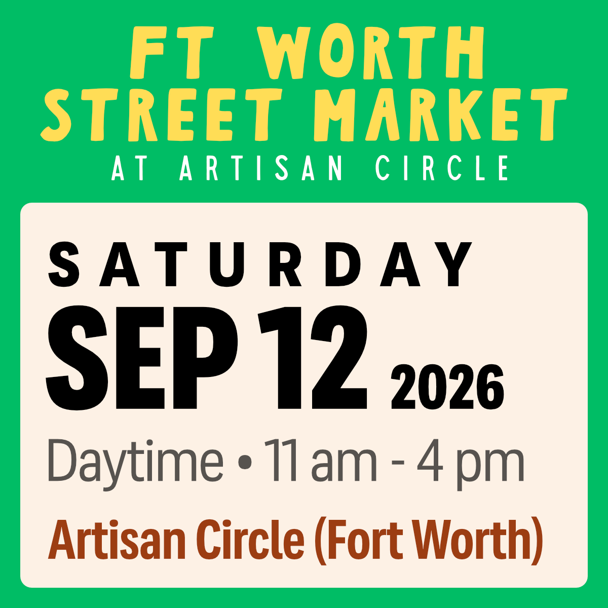 Ft Worth Street Market at Artisan Circle - September 12, 2026