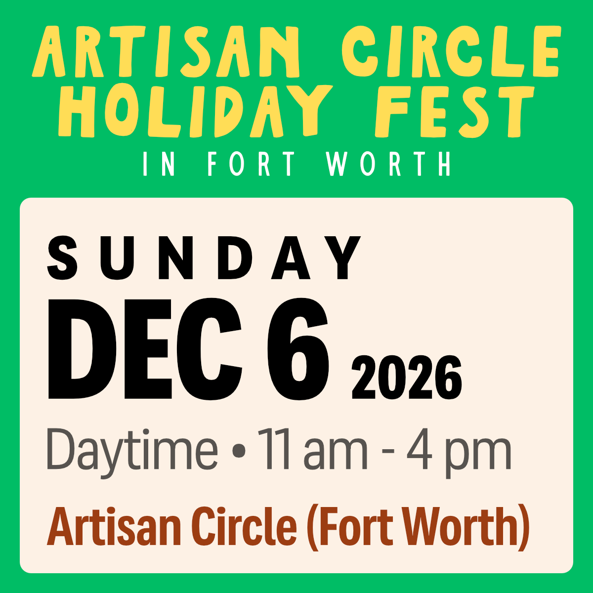 Artisan Circle Holiday Festival (Fort Worth) - December 6, 2026